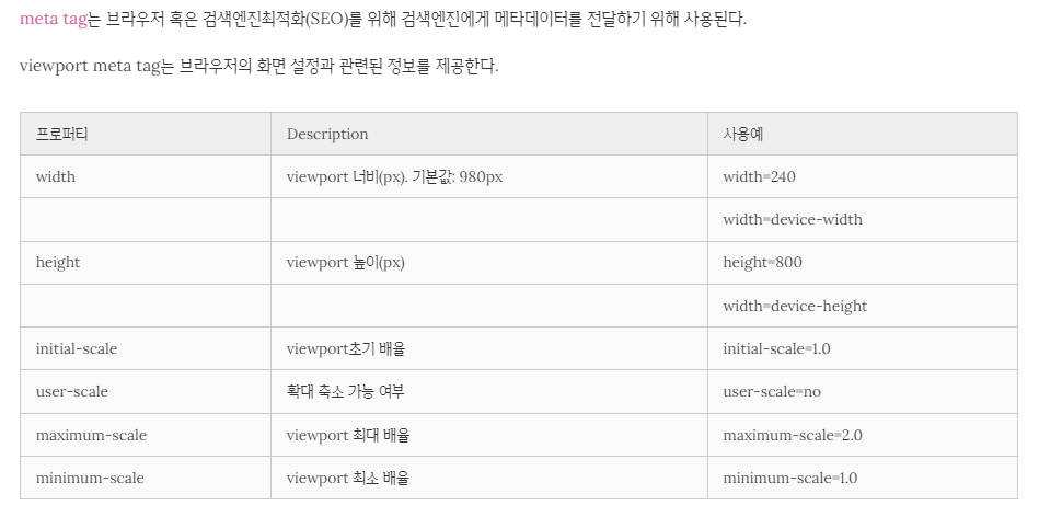 뷰포트를 이용해 디바이스의 특성과 디바이스의 화면 크기 등을 고려해 각종 디바이스 사용자에게 최적화된 웹페이지 제공
